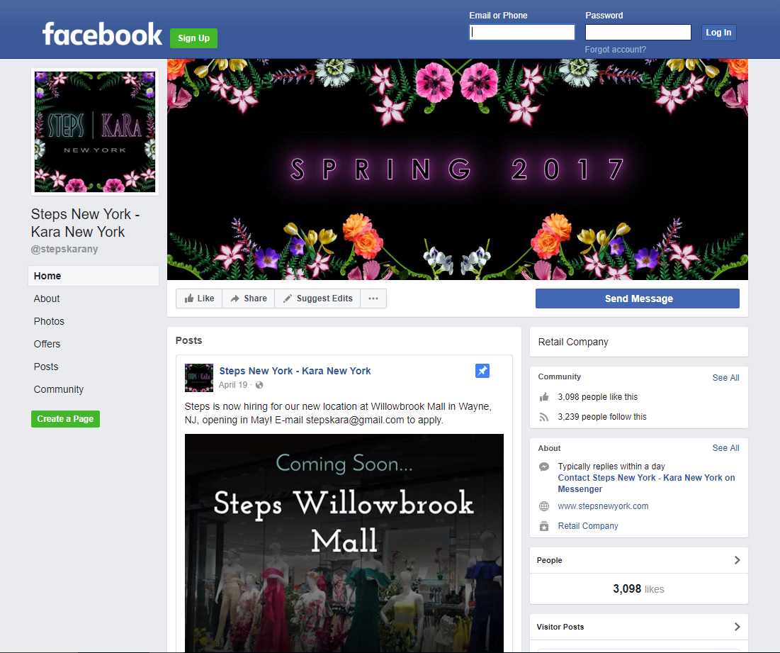 To correspond with the arrival of the Steps and Kara Spring 2017 clothing collection, I designed spring-themed graphics to use across their website and social media accounts. The above banner was the basis for the theme, and was used on the company website home page. A trend for the Spring collection was floral prints and embroidery, so I created a floral pattern border that I would use throughout all the Spring graphics.